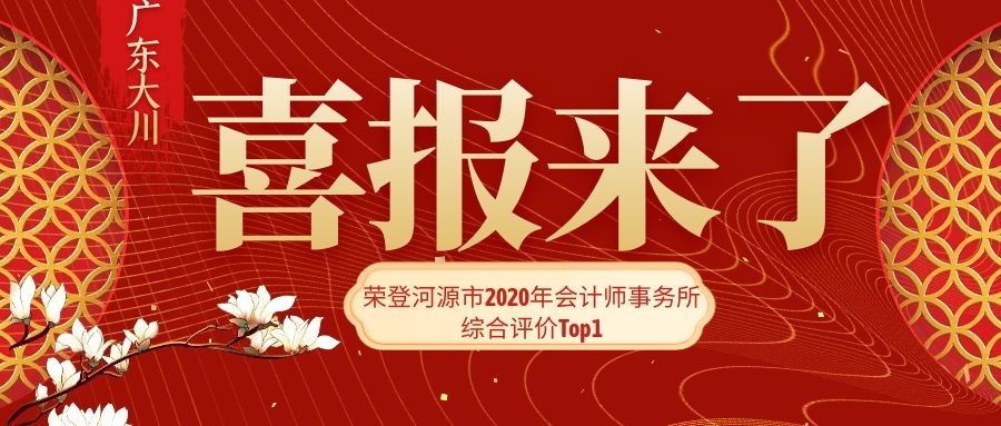 喜報!廣東大川榮登河源市2020年會計師事務(wù)所綜合評價Top1